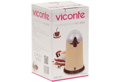 Кофемолка Viconte VC-3114 280 W , Кофемолка, мощность 280W, вместимость 50г. Пульсовый режим работы, блокировка включения при снятой крышке, прозрачная крышка, чаша и нож из нержавеющей стали, защита от перегрева.