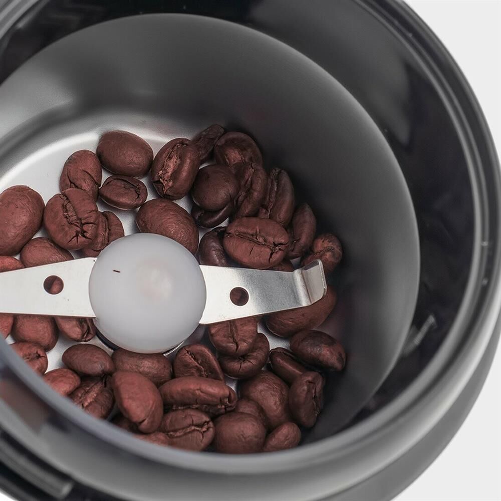Мощность 150Вт. Импульсный режим. Защита от перегрева. Объем емкости для молотого кофе 50г. Система помола ротационная.