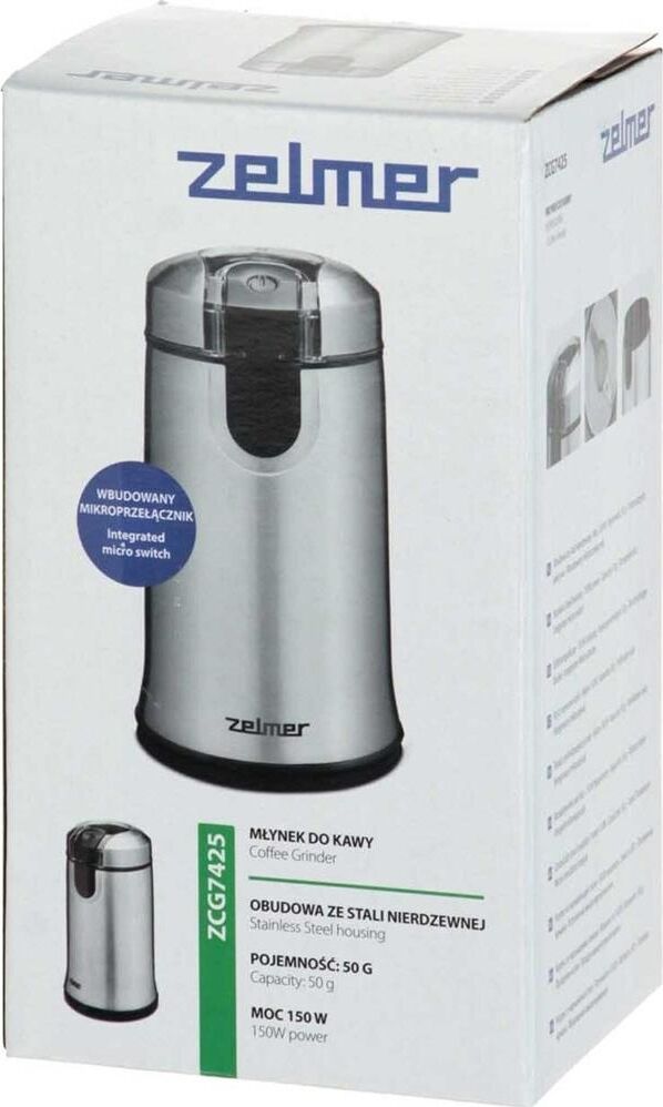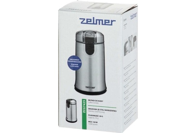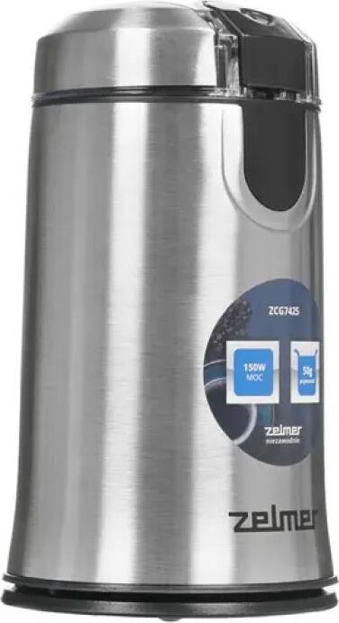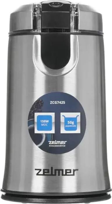 Кофемолка ZELMER Мощность - 150Вт · Объем резервуара для молотого кофе: 50г · Отключение при снятой крышке