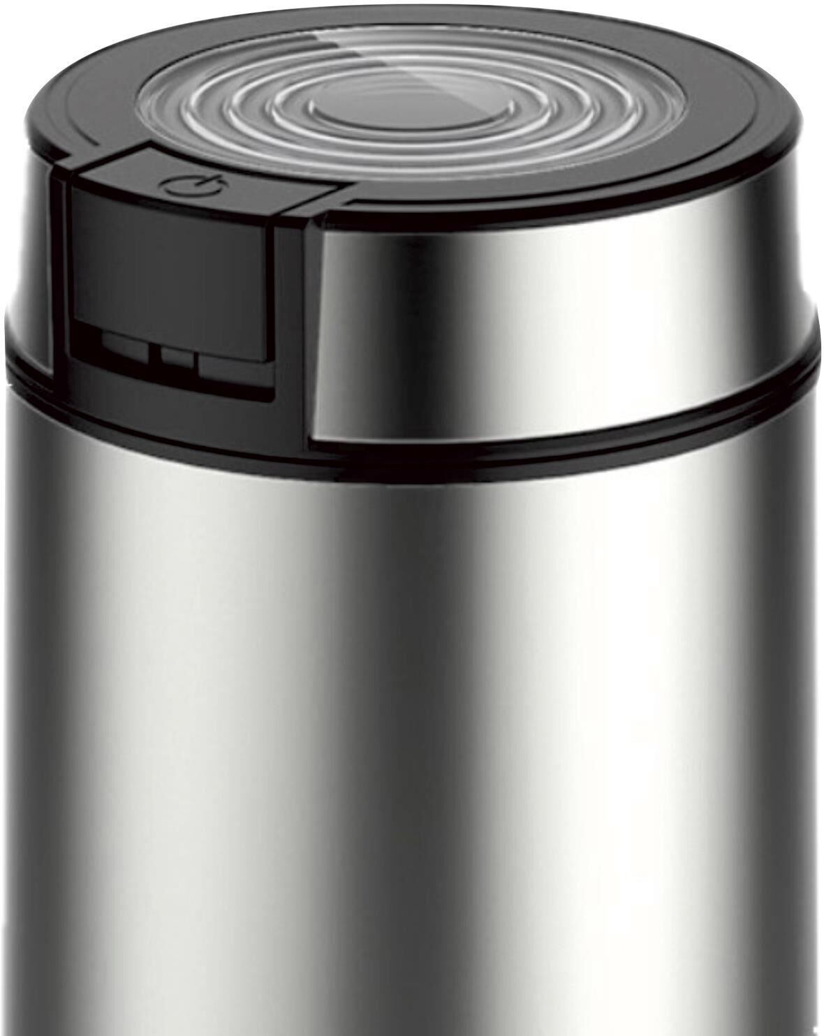 Электрическая кофемолка Мощность – 250 Вт Напряжение - ~ 220-240V, 50/60Hz Тип двигателя – АС Система помола – ротационная Импульсный режим работы – да Макс. Загрузка – 50 г Материал корпуса – н/ж сталь Материал емкости – н/ж сталь Материал ножей – н/ж сталь