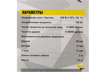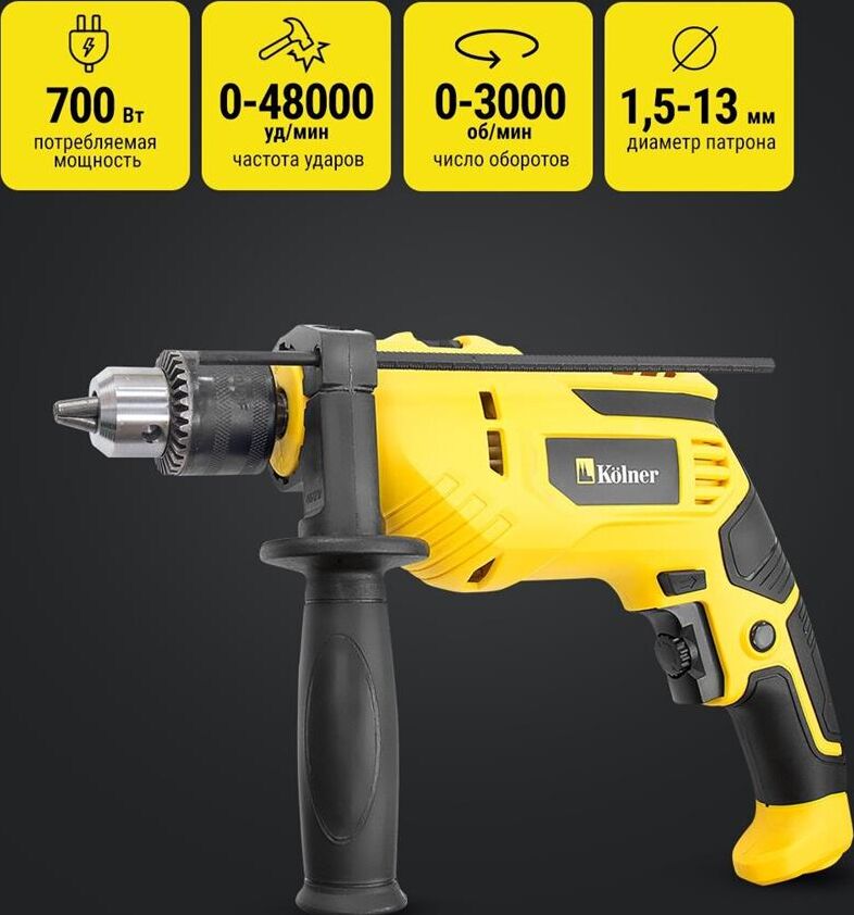дополнительная рукоятка, ограничитель глубины сверления, блокировка кнопки включения