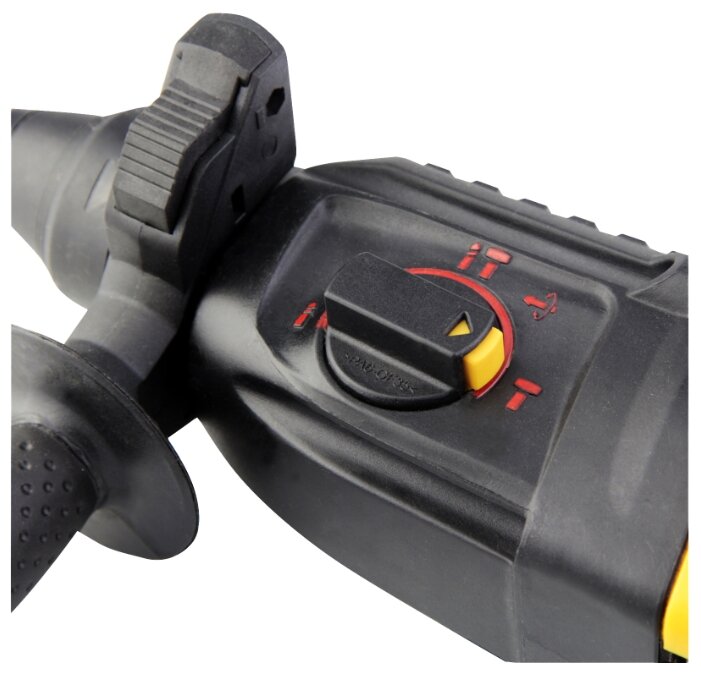 дополнительная рукоятка, дополнительный комплект угольных щеток, ограничитель глубины сверления, блокировка кнопки включения, упаковка смазки в комплекте
