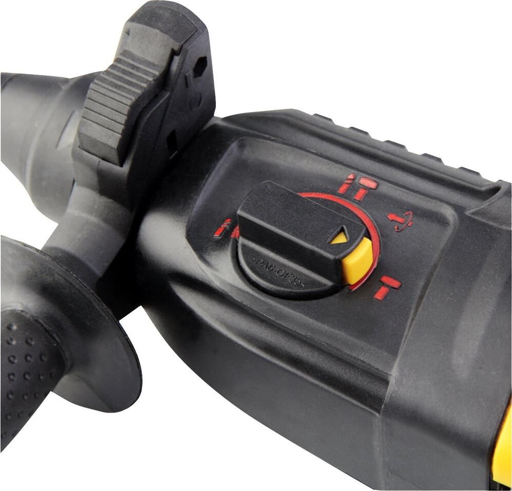 дополнительная рукоятка, дополнительный комплект угольных щеток, ограничитель глубины сверления, блокировка кнопки включения, упаковка смазки в комплекте