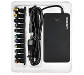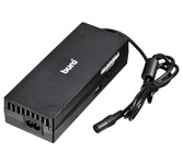 Универсальный сетевой адаптер для ноутбуков мощностью 120 ватт и USB-портом для зарядки мобильных телефонов и планшетов. В комплекте входят 11 сменных штекеров, подходящих к большинству ноутбуков. Выбор мощности для питания происходит в ручном режиме.