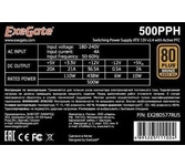 Блок питания 500W ExeGate 80 PLUS® 500PPH-LT-OEM (ATX, APFC, КПД 82% (80 PLUS), 12cm fan, 24pin, (4+4)pin, PCIe, 5xSATA, 3xIDE, black, RTL)