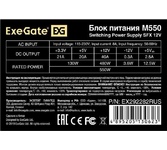 Тип товара: Блок питания; Модель: EX292282RUS; Тип оборудования: Блок питания; Наличие PFC: Блок питания без PFC; Охлаждение: Вентилятор 80 x 80 мм; Поддерживаемое напряжение: 115 / 230 В; Мощность (Вт): 550; Коннектор питания мат. платы: 20+4 pin; Molex 4-pin: 1; Molex 4 + 4 pin: 1; Floppy 4-pin: 1.
