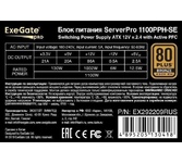 [Блок питания] Exegate EX292209RUS Серверный БП 1100W ExeGate ServerPRO 80 PLUS® Bronze 1100PPH-SE (ATX, for 3U+ cases, APFC, КПД 89% (80 PLUS Bronze), 12cm fan, 24pin, 2x(4+4)p, 6xPCI-E, 8xSATA, 4xIDE, box, black) Exegate EX292209RUS Серверный БП 1100W ExeGate ServerPRO 80 PLUS® Bronze 1100PPH-SE (ATX, for 3U+ cases, APFC, КПД 89% (80 PLUS Bronze), 12cm fan, 24pin, 2x(4+4)p, 6xPCI-E, 8xSATA, 4xIDE, box, black) Особенности блока питания Защита от коротких замыканий (SCP)