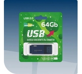 Флэш-накопитель, объем 64 Гб, интерфейс USB-A 2.0, скорость записи: 6-10МБ/с, скорость чтения: 10-30МБ/с.