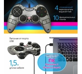 Геймпад проводной , интерфейс: USB 1.1 или 2.0, режимы работы: цифровой, органы управления: восьмипозиционный переключатель направления и кнопки управления, количество кнопок управления: 10, цвет: черный.