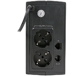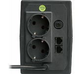 ИБП линейно-интерактивный, Тип нагрузки компьютер, монитор, Мощность полная, ВА 650, Мощность активная, Вт 390, Максимальная нагрузка, Вт 390, Уровень входного напряжения, В~ 175 - 280 ± 3%, Уровень выходного напряжения, В~ 220 ± 10 %, Форма выходного напряжения апроксимированная синусоида, AVR (авторегулятор напряжения), Входная частота, Гц 50, Рабочая частота, Гц 50 ± 1 % (в режиме работы от батареи), Коммуникационный порт USB, RJ-45, Входная вилка 1 хСЕЕ7/7, Выходные розетки, шт 2хCEE7/4, Поддерживаемые интерфейсы USB, Защита перегрузка (AVR +25% 60 сек, BAT +10% 10 сек), короткое замыкание, защита от перезаряда или саморазряда батарей, Типовое время переключения, мс 10, Продолжительность работы от батарей, мин. 3-20, в зависимости от подключаемой нагрузки, Тип аккумуляторов герметичные необслуживаемые свинцово-кислотные батареи (являются расходным материалом), Напряжение батарей, В 12, Емкость батареи, А*ч 7,Время подзаряда 6-8 часов (до уровня >90 %), Индикаторы питание от батареи, работа от сети, заряд