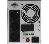 Полная мощность, ВА: 3000, Мощность активная, ВТ: 2400, Номинальное напряжение, В: 230, Диапазон напряжений, В: 145-275, Частота на входе, Гц: 45-65, Напряжение, В: 220±8%, Частота на выходе, Гц: 50±0.5, Форма выходного напряжения: Чистая синусоида, Время переключения на работу от батарей, мс: 2-6, но не более 10, Тип индикации: LCD, Входной разъем: IEC C20, Выходные разъемы: 8xIEC C13, USB-порт.