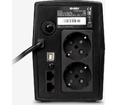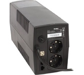 ИБП линейно-интерактивный, Тип нагрузки компьютер, монитор, Мощность полная, ВА 650, Мощность активная, Вт 390, Максимальная нагрузка, Вт 390, Уровень входного напряжения, В~ 175 - 280 ± 3%, Уровень выходного напряжения, В~ 220 ± 10 %, Форма выходного напряжения апроксимированная синусоида, AVR (авторегулятор напряжения), Входная частота, Гц 50, Рабочая частота, Гц 50 ± 1 % (в режиме работы от батареи), Коммуникационный порт USB, RJ-45, Входная вилка 1 хСЕЕ7/7, Выходные розетки, шт 2хCEE7/4, Поддерживаемые интерфейсы USB, Защита перегрузка (AVR +25% 60 сек, BAT +10% 10 сек), короткое замыкание, защита от перезаряда или саморазряда батарей, Типовое время переключения, мс 10, Продолжительность работы от батарей, мин. 3-20, в зависимости от подключаемой нагрузки, Тип аккумуляторов герметичные необслуживаемые свинцово-кислотные батареи (являются расходным материалом), Напряжение батарей, В 12, Емкость батареи, А*ч 7,Время подзаряда 6-8 часов (до уровня >90 %), Индикаторы питание от батареи, работа от сети, заряд