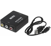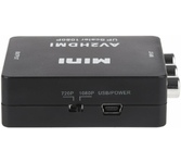 Активный конвертер 3 RCA на HDMI предназначен для перекодирования видео- и аудиосигналов разъемов типа RCA (тюльпаны, колокольчики) в видео- и аудиосигнал разъема HDMI с функцией масштабирования. Конвертер прост в установке и удобен в использовании. Изделие подключается к сети при помощи USB (поставляется в комплекте с изделием), имеет переключатель характеристик выходного сигнала: 720p60Hz или 1080p60Hz. Основные характеристики. Модель: MINI AV to HDMI; Входной интерфейс: CVBS L/R (RCA); Выходной интерфейс: HDMI; Источник питания: через USB кабель; Передача звука: есть (стерео); Переключатель PAL/NTSC: есть; Максимальное разрешение видео на аналоговом выходе: Full HD 1080р (1920х1080); Материал: пластик; Цвет: черный; Размеры: 66х55х20 мм; Вес: 40 гр. Комплектация: Конвертер HDMI to CVBS L/R, USB шнур.