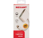 Артикул № 869968 Переходник Rexant 18-4152 позволяет выводить звуковой и видеосигнал от разъема Lightning ПК или ноутбука на устройства с интерфейсом HDMI. Поддерживается максимальное разрешение видео до 4К с частотой 30 Гц. Для подключения устройства необходимо установить штекер кабеля в соответствующий разъем компьютера. Входной разъем Lightning предназначен для дополнительного питания при передаче видеосигнала.