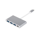Переходник, USB-Концентратор TYPE-C 3.1(m) на USB 3.0 (3шт) + TYPE-C (f). Данный переходник используется для подключения различных периферийных устройств через разъемы USB 3.0, которых в данном переходнике 3 шт к разъему TYPE-C Macbook при этом в переходнике есть один разъем TYPE-C (f) что позволяет использовать его без потери разъема TYPE-C самого Macbook. Скорость передачи данных до 5 Гбит/с. Материал проводника медь. Штекеры выполнены из легкого и прочного пластика. Контакты разъёмов никелированные. Длина кабеля - 0.1 метра