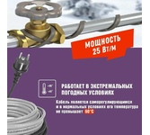 Комплекты саморегулирующегося кабеля Extra Line MSR-PB REXANT предназначены для защиты от замерзания бытовых трубопроводов, счетчиков воды, вентилей, а также могут использоваться для обогрева кровли и водостоков. Нагревательный кабель соединен с питающим кабелем, на конце которого находится евровилка для подключения в розетку с заземлением. Нагревательный кабель является саморегулирующимся и в нормальных условиях его температура не превышает 60°C. Комплекты подходят для использования как в помещениях, так и на улице. Кабель может быть смонтирован на поверхности как металлической, так и пластиковой трубы, под теплоизоляцией. Кабель может пересекаться сам с собой. Способы монтажа: 1. Монтаж кабеля на поверхности трубы, под теплоизоляцией. Фиксация кабеля обеспечивается алюминиевым скотчем или теплостойкой лентой. Запрещается устанавливать нагревательный кабель способами и в условиях, которые могут привести к механическому повреждению внешней оболочки, например, за счет сжатия, перетирания, растяжения, перех