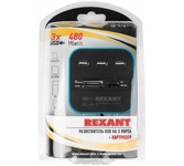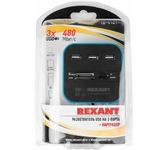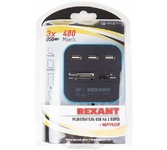 REXANT Разветвитель USB на 3 порта+картридер (все в одном) черный