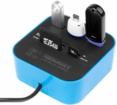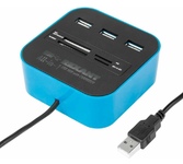 USB разветвитель (хаб) торговой марки REXANT предназначен для подключения нескольких устройств USB одновременно, таких как: компьютерные мыши, клавиатуры и мультимедийные джойстики, модемы и роутеры, внешние жёсткие диски и накопители, фотоаппараты и камеры, смартфоны и планшетные ПК, и даже принтеры. Кроме того в данной модели имеются порты для подключения карт памяти SD/microSD/MS/M2. Т.е. данная модель имеет возможность подключения к себе всех существующих разновидностей карт памяти. Увеличение количества USB портов и портов для карт памяти на вашем компьютере не только снижает их износ, но и облегчает процесс использования. Данный прибор очень компактен и идеально подойдет как владельцам портативных компьютеров, ноутбуков, так и пользователям стационарных компьютеров. USB Хаб REXANT не требует внешнего питания и обеспечивает отличную скорость передачи данных. Благодаря компактному размеру и весу его легко можно носить с собой. Интерфейс: USB2.0, совместим с USB1.1 и USB3.0 Скорость передачи данных: до 4