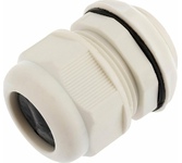 Кабельный ввод предназначен для фиксации кабеля при вводе его в электротехническое оборудование, например: коммутационные шкафы, короба, пульты управления, предназначенные для эксплуатации на улице, в подвалах, в условиях морского тумана, повышенного загрязнения и т. п. Защищает кабель от перетирания об острые края оборудования в процессе эксплуатации. Конструкция гайки предотвращает раскручивание. Классификация: по диаметру кабеля в пределах указанного диапазона до и после его крепления Класс влагозащиты: IP68 Материал корпуса: нейлон Материал уплотнителя: неопрен Тип резьбы: MG Диапазон рабочих температур: –40…+100 °C Устойчив к агрессивным средам: соленая вода, слабые кислоты, алкоголь, масла, жиры, растворители общего назначения Цвет: белый.