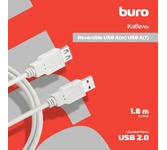 BURO Кабель-удлинитель USB2.0 Reversible, USB A(m) - USB A(f), 1.8м, серый