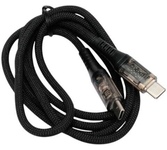Кабель предназначен для зарядки электронных устройств продукции Apple, а также их синхронизации с ПК или ноутбуками. С одной стороны изделия расположен разъем USB-С, а с другой – разъем Lightning. Изделие выполнено из нейлонового плетеного провода высокой плотности, что обеспечивает защиту от перегибов и заломов. Цвет – черный. Кабель поддерживает стандарт быстрой зарядки Power Delivery и имеет выходную мощность 27 Вт с силой тока 3А. Скорость передачи данных составляет до 480 Мбит/с. На штекере кабеля предусмотрена световая индикация, которая облегчает поиск устройства в ночное время. Длина кабеля равна 1 м, что позволяет заряжать устройство и передавать данные на комфортном расстоянии для пользователя.
