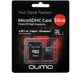 QUMO (18741) MicroSDHC 16GB Class10 UHS-I + адаптер (QM16GMICSDHC10U1)