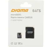 DIGMA Флеш карта microSDXC 64GB CARD30 V30 + adapter