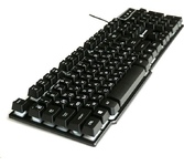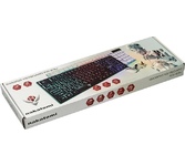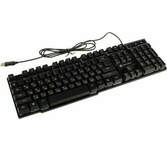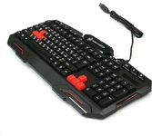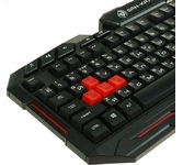 Клавиатура игровая проводная, мультимедийная, интерфейс USB, корпус черный матовый пластик, количество клавиш - 104, клавиши Windows, мультимедиа-клавиши комбинированы с F-клавишами, клавиши непрозрачные, символы просвечиваются изнутри, регулируемый угол наклона, длигна кабеля - 1,5 м.