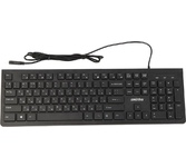 Клавиатура проводная, мультимедийная, интерфейс USB, корпус черный матовый пластик, количество клавиш - 114 (104 основных + 10 мультимедыных), подставка под запястья, регулируемый угол наклона, длина кабеля - 1,5 м.