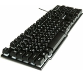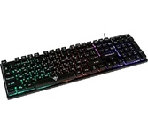 Клавиатура игровая, проводная, интерфейс подключения - USB, радужная подсветка, количество кнопок - 104, увеличенная площадь клавиш-модификаторов (Ctrl, Shift), клавиш Enter и BackSpace, BackSpace, влагоустойчивая конструкция, длина кабеля - 1,5 м.