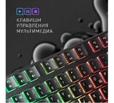 Кейкапы двух цветов Радужная подсветка 12 функциональных кнопок: - Дополнительные клавиши для управления звуком, запуска приложений «Мой компьютер» и «Калькулятор» Управление мультимедийными программами: - Активируются клавишей FN Возможность выключения подсветки Увеличенная площадь клавиш-модификаторов (Ctrl, Shift), клавиш Enter и BackSpace Влагоустойчивая конструкция клавиатуры Горячие клавиши для быстрого доступа к офисным, мультимедийным и интернет приложениям Многофункциональное программное обеспечение: - Работает только с операционной системой Windows Угол наклона клавиатуры регулируется с помощью ножек
