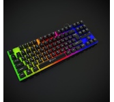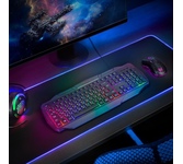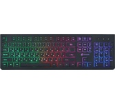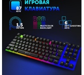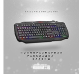 Полноразмерная мембранная игровая клавиатура с кейкапами трех цветов и радужной подсветкой. Клавиатура имеет весь необходимый функционал для комфортной игры: возможность блокировки клавиши Win, обмен функциями между клавишами WASD и стрелками, поддержка Anti-ghost для 26 клавиш и управление мультимедиа с помощью клавиши FN.