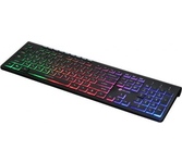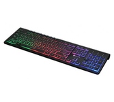Клавиатура проводная, интерфейс USB, полноразмерная раскладкой с цифровым блоком и клавишами для управления мультимедиа, радужная подсветка, slim дизайн, материал корпуса пластик, длина кабеля - 1,5 м.