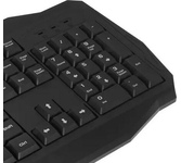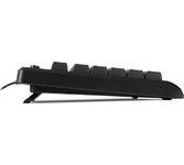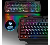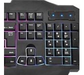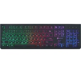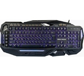 Мультимедийная игровая клавиатура с подсветкой клавиш, проводная, интерфейс - USB, корпус - черный текстурированный пластик, количество клавиш - 120, клавиши Windows, мультимедиа-клавиши - блок в верхнем ряду над F-клавишами, 3 уровня яркости подсветки, регулируемый угол наклона, кабель с ферритовым фильтром, длина кабеля - 2,0 м, габаритные размеры (В*Ш*Г, мм) - 515*215*32