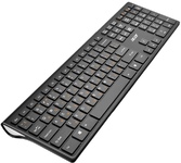 Клавиатура беспроводная, Slim-дизайн, интерейс USB, количество клавиш - 78+ тачпад с 2 кнопками, мультимедийные клавиша : Fn+F1-F12, возможность одновременного нажалия до 6 клавиш, радиус действия до 10 м.