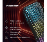 Красные свитчи Игровая подсветка - Подсветка символов и клавиш красного цвета 16 режимов подсветки Регулируемая яркость подсветки - Меняйте яркость подсветки с помощью комбинации клавиш FN+Стрелки вверх/вниз Управление скоростью динамической подсветки FN+стрелки влево/вправо Функция Anti-ghost - 25 клавиш: Q, A, Z, W, S, X, E, D, C, R, F, V, T, G, B, M, Space, Tab, Ctrl, CAPS, Shift, ^v Аппаратная блокировка клавиши WIN во время игры - Используйте комбинацию клавиш "FN+WIN" Обмен функциями между клавишами "^" и "WASD" - Используйте комбинацию клавиш "FN+W" Технология Double injection - Символы не сотрутся, так как клавиши отлиты из двух цветов пластика: черный для области кнопки и белый/прозрачный для символов Резиновые ножки предотвращают скольжение по поверхности стола Угол наклона клавиатуры регулируется с помощью ножек Повышенная износостойкость Для того, чтобы восстановить настройки по умолчанию, используйте сочетание клавиш FN+ESC