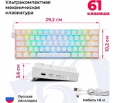 Беспроводная механическая клавиатура Варианты подключения: Проводное, Bluetooth, 2.4 Гц, Количество клавиш: 96, Интерфейс заряда/проводного подключения: Type-C (Кабель USB Type-C в комплекте) кабель 160 см, Размеры: 406*137,9*45 см, белая подсветка, салатовые свитчи , русская раскладка