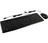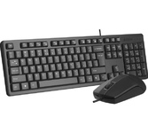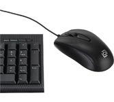 Проводной набор (клавиатура+мышь), клавиатура - количество калвиш - 104, интерфейс USB, двухцветная раскладка, длина кабеля - 1,5 м; мышь - проводная оптическая, количество кнопок - 3, разрешение 1000 dpi , цвет - черный.
