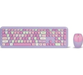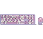 Цвет мыши: фиолетовыйТип сенсора: ОптическийКоличество кнопок мыши: 3Радиус действия: до 10 мПитание мыши: 1 батарейка ААИнтерфейс подключения: USBЦвет клавиатуры: белыйПитание клавиатуры: 1 батарейка ААА