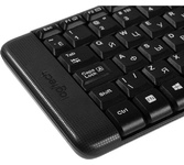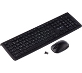 Набор беспроводной (клавиатура+мышь), интерфейс USB; клавиатура - классическая раскладка, мембранная, количество клавиш - 104, влагозащитная конструкция, тихий ход клавиш; мышь - оптическая, количество конопок - 3, разрешение - 1000 dpi, радиус действия - 10 м; комплект устойчив к механическим воздействиям.