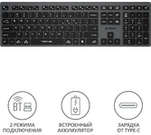 Набор беспроводной (клавиатура+мышь), мультимедийный, интерфейс USB; клавиатура - классическая раскладка, мембранная, количество клавиш - 112, мультимедийных - 8; мышь - оптическая, количество конопок - 3, разрешение - 1000 dpi, радиус действия - 10 м; дизайн комплекта выполнен в едином стиле.