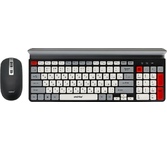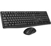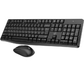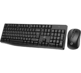 Комплект беспроводная клавиатура + мышь. Состав: беспроводная клавиатура, Количество клавиш: 104, Беспроводное соединение с частотой 2.4 GHz, Интерфейс: USB2.0, Раскладка клавиатуры: английская/русская, Тип клавиатуры - мембранная, Рабочее расстояние: 10 м Питание: 2 * батарейки типа ААА, в комплект не входят, Размеры, мм: 436*136,6*28, Вес, г: 435 Цвет: черный, Совместимость с ОС: Windows, MacOS. Беспроводная оптическая мышь, Количество кнопок: 3, Беспроводное соединение с частотой 2.4 GHz, Интерфейс: USB2.0, Разрешение на дюйм DPI: 1000, Рабочее расстояние: 10 м, Питание: 1 * батарейка типа AАА, в комплект не входят Размер мм: 110 * 63 * 35, Вес, г: 45, Цвет: черный, Совместимость с ОС: Windows, MacOS