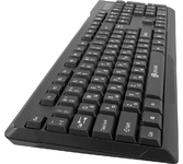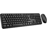 Беспроводной набор (клавиатура + мышь) , интерфейс USB ; клавиатура - количество клавиш - 104, классическая раскладка; мышь - оптическая, количество кнопок - 3, колесо прокрутки, разрешение сенсора - 1000 dpi, радиус действия - до 10 м.