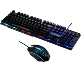 Проводной комплект, мультимедийного функционал плоские круглые клавиши + бесшумная мышь. Клавиатура имеет Rainbow-подсветку с опцией настройки яркости и функцией отключения, а также обладает повышенным ресурсом до 8 млн нажатий. Мышь полноразмерная с улучшенной эргономикой и приятной разноцветной подсветкой, есть опция отключения подсветки. Подходит для любой руки, с прорезиненным колесиком, приятным на ощупь Soft-Touch покрытием и управлением скоростью курсора от 800 до 2400 DPI., Питание USB