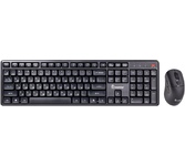 Набор беспроводной (клавиатура+мышь), клавиатура - количество клавиш - 79, низкопрофильные, 12 клавиш отвечают за мультимедиа и выход в сеть; мышь - оптическая, свтодиодная, количество клавиш - 3, разрешение - 1600 dpi, радиус действия - до 15 м.