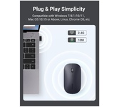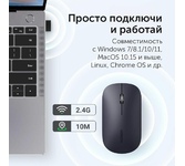 Комплект беспроводной (клавиатура+мышь), классическая раскладка клавиатуры; островной (ноутбучный) тип клавиш; мультимедийный функционал (12 горячих клавиш); симметричная мышь, 800-1200-1600 DPI; диапазон действия до 10 м