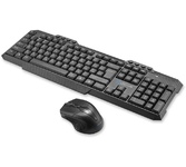 Беспроводной набор (клавиатура + мышь) , интерфейс USB ; клавиатура - количество клавиш - 104, классическая раскладка; мышь - оптическая, количество кнопок - 3, колесо прокрутки, разрешение сенсора - 1000 dpi, радиус действия - до 10 м.