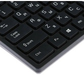 Набор беспроводной (клавиатура+мышь), клавиатура - количество клавиш - 79, низкопрофильные, 12 клавиш отвечают за мультимедиа и выход в сеть; мышь - оптическая, свтодиодная, количество клавиш - 3, разрешение - 1600 dpi, радиус действия - до 15 м.