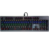 Интерфейс: USB. Мультимедийные дополнительные клавиши: есть. Для геймеров: да. Обычная/тонкая: обычная. Клавиатура с русскими буквами: да. Особенности: Anti-Ghosting неограниченное количество одновременных нажатий Ресурс клавиш до 50 000 000 нажатий Мультимедийные клавиши (FN-F1-F12) 6 цветов подсветки 5 увроней яркости кабель в прочной плетеной оплетке 10 режимов подсветки. Тип: Клавиатура. Дизайн клавиш: квадратные. Длина кабеля: 1.5. Цвет английских букв: серый. Цвет русских букв: серый. Цвет клавиш: черный. Цвет корпуса клавиатуры: черный. Материал корпуса: пластик/металл. Механическая: да. Тип соединения: проводная. Количество клавиш: 87. Тип подсветки: многоцветная. Тип механических переключателей: Blue. Габариты упаковки (ед) ДхШхВ: 0.388x0.156x0.041. Вес упаковки (ед): 0.86. Комплектация: Полную комплектацию товара уточняйте у производителя. Гарантия: 12 мес.. Размеры клавиатуры (ШхВхГ): 360 х 35 х 160 мм. Цвет: черный. Особенности клавиш: интернет-клавиши. Тип механизма клавиш: механическая. Интерфей