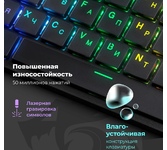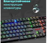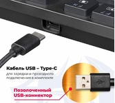 Повышенная износостойкость Позолоченный USB-коннектор - Позолоченное напыление обеспечивает лучшую проводимость, меньшее сопротивление и окисляемость Радужная подсветка Технология Hot Swap Влагоустойчивая конструкция клавиатуры Тихий ход клавиш обеспечивает практически бесшумную работу